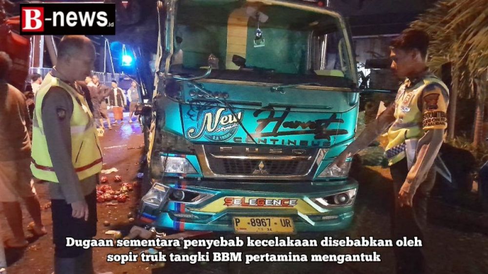 Dugaan sementara kecelakaan tersebut terjadi akibat sopir truk tangki BBM pertamina mengantuk. (Irw)
