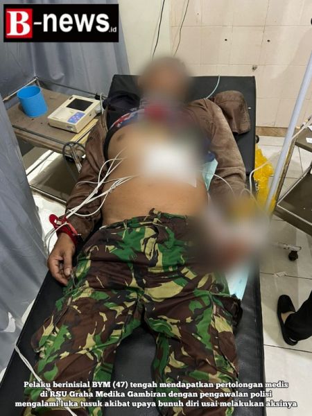 Pelaku berinisial BYM (47) tengah mendapatkan perawatan medis atas luka yang dideritanya akibat percobaan bunuh diri setelah melakukan aksi pembacokan.(irw)