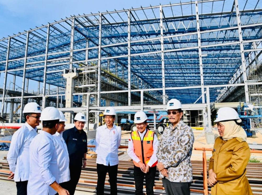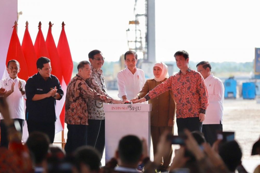 GRESIK | B-news.id - Presiden Joko Widodo melakukan groundbreaking proyek pembangunan pabrik foil tembaga PT Hailiang Nova Material Indonesia, yang ada di Kawasan Industri Java Integrated and Ports Estate (JIIPE), Gresik, Jawa Timur, Selasa (20/6/2023).