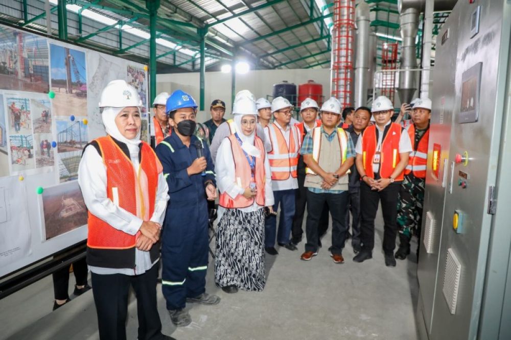 Gubernur Khofifah meninjau pabrik pengelolaan limbah di Mojokerto. (Ist)