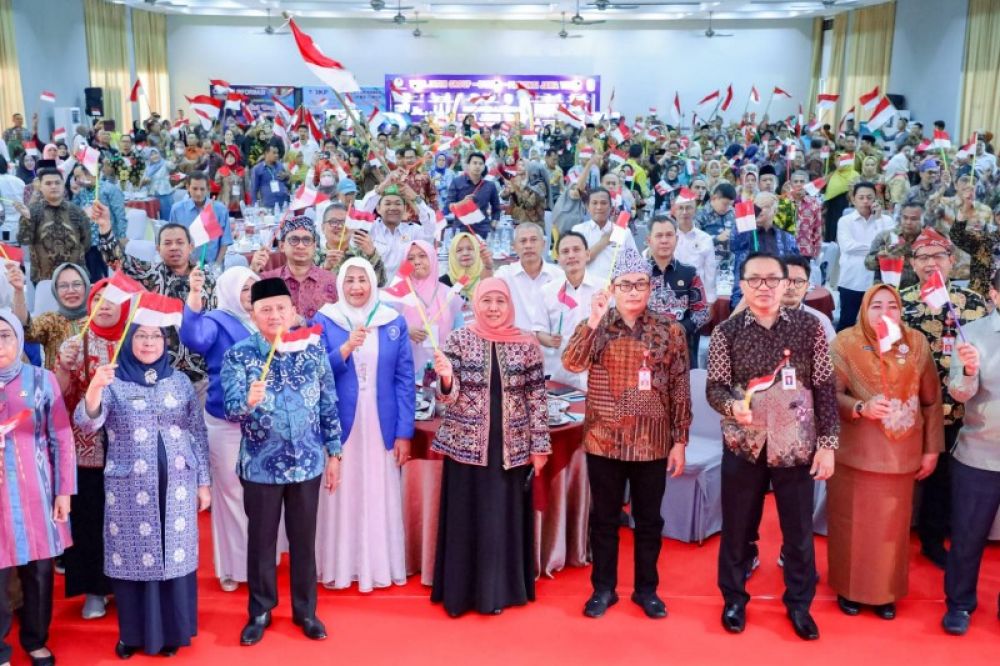 Kibarkan semangat Merah Putih Gubernur Khofifah menyanyikan lagu Bendera. (Ist)