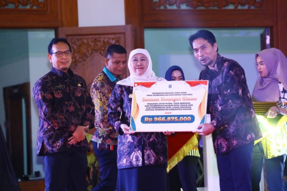 Tak hanya itu, ia juga memberikan Bantuan Keuangan Khusus Program Jatim Puspa, Desa Berdaya, dan Pemberdayaan Bumdesa 2023 kepada Pemerintah Kab. Madiun dan Pemerintah Desa lokasi program senilai Rp. 966.875.000. Bantuan diberikan kepada Bupati Madiun.