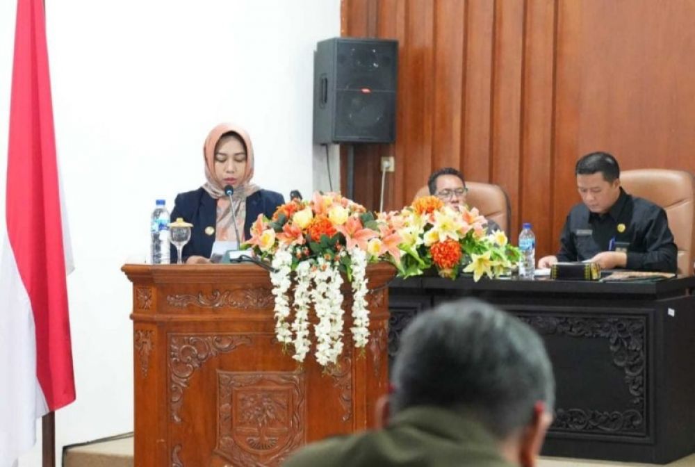 KOTA MOJOKERTO | B-news.id - Wali Kota Mojokerto Ika Puspitasar menghadiri rapat paripurna Dewan Perwakilan Rakyat Daerah (DPRD) dalam rangka menyampaikan jawaban terhadap pandangan umum fraksi- fraksi terkait empat Raperda tahun 2023, Kamis (20/7).