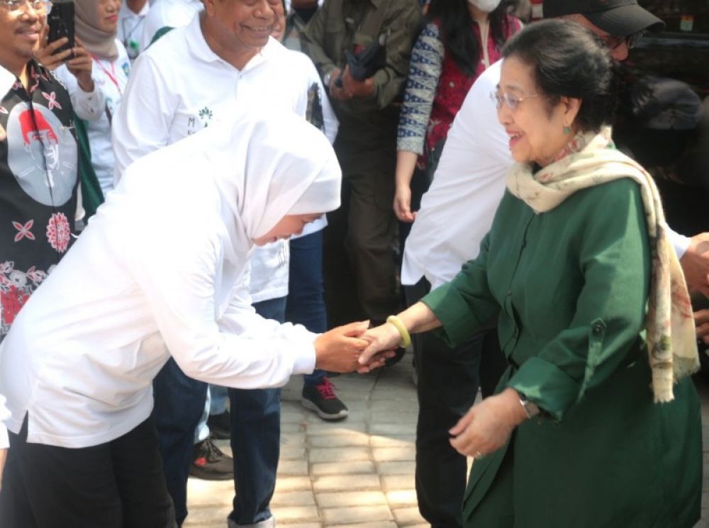Gubernur Khofifah menyanbut kedatangan Presiden RI ke 5, Megawati Soekarnoputri. (Ist)