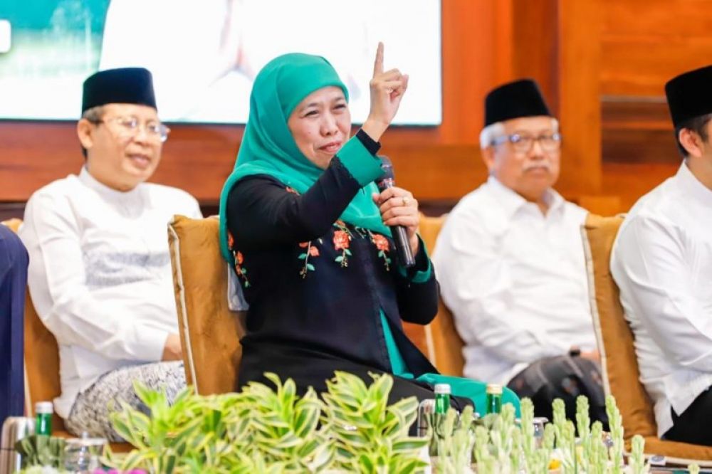SURABAYA | B-news.id Gubernur Jawa Timur Khofifah Indar Parawansa menggelar Dzikir dan Doa Asyura 10 Muharram 1445 Hijriah di Gedung Negara Grahadi Surabaya, Kamis (27/7) malam.