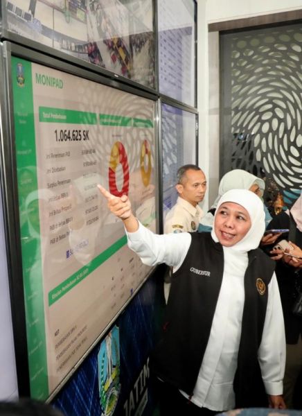 Gubernur Khofifah saat berada di kantor Bapenda Prov Jatim. (Ist)