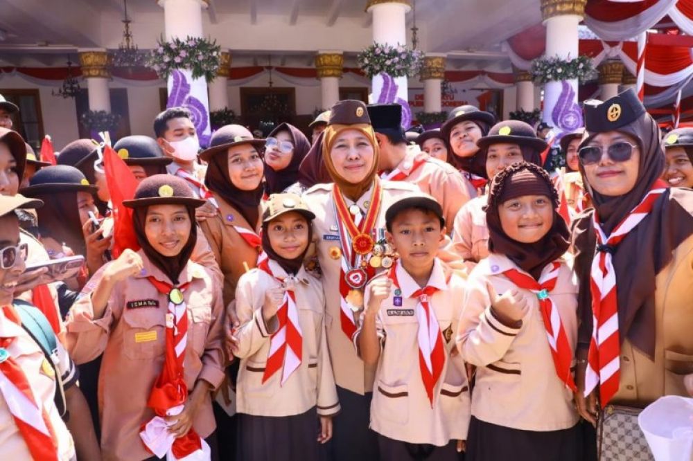 SURABAYA | B-news.id - Gubernur Jawa Timur Khofifah Indar Parawansa mengajak anggota Pramuka untuk menguatkan nilai Pancasila dalam setiap gerakan kepanduan Pramuka. Ini penting, ciri khas gerakan pandu Pramuka Indonesia terletak pada penanaman nilai Pancasila di dalamnya.