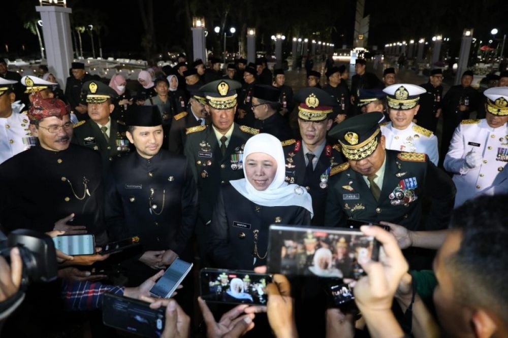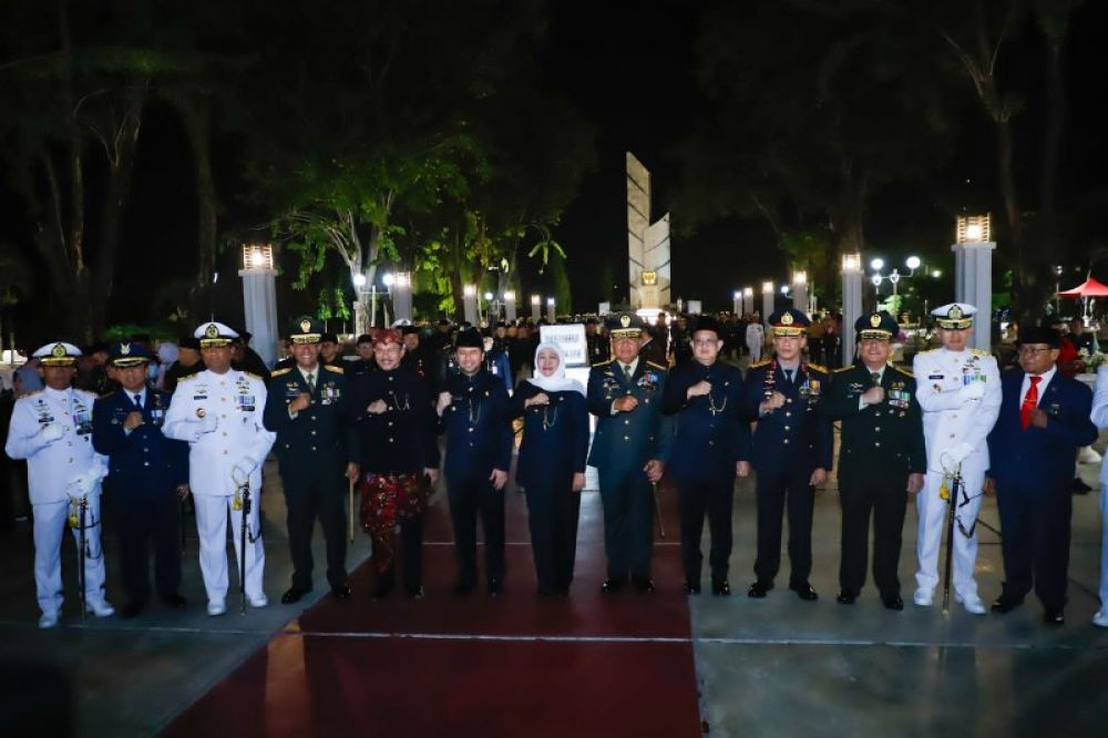 SURABAYA | B-news.id - Gubernur Jawa Timur Khofifah Indar Parawansa memimpin Apel Kehormatan dan Renungan Suci (AKRS) dalam rangka Peringatan HUT Ke-78 RI, di Taman Makam Pahlawan 10 Nopember, Surabaya, Kamis (17/8) dini hari.