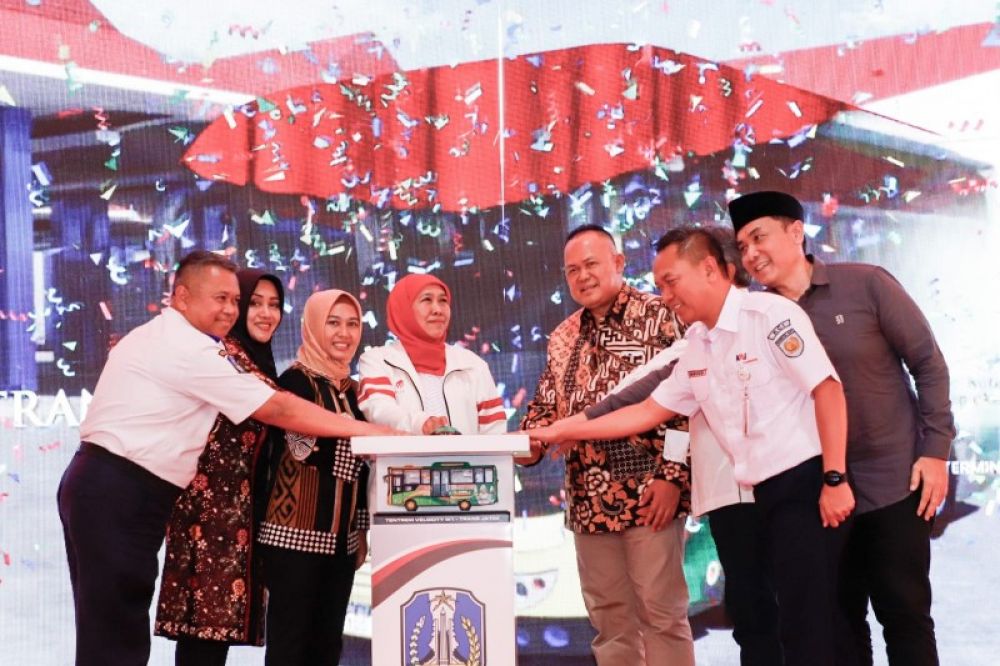 KOTA MOJOKERTO | B-news.id - Gubernur Jawa Timur Khofifah Indar Parawansa meresmikan Trans Jatim Koridor II yang mengusung tema “Tribhuwana Tunggadewi” di Terminal Kertajaya Kota Mojokerto, Minggu (20/8). Peresmian ini sekaligus menjadi kado istimewa dari Pemprov Jatim pada peringatan HUT Ke-78 Kemerdekaan RI bagi masyarakat.