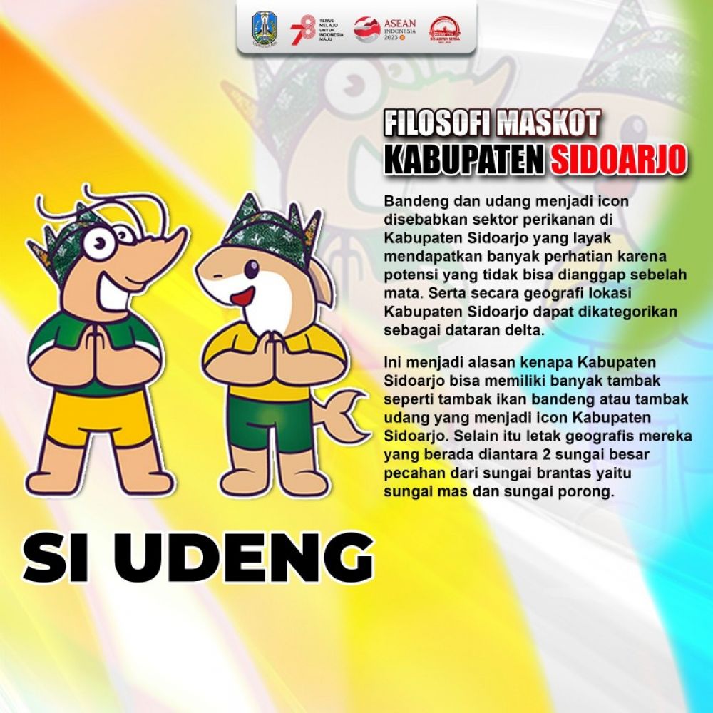 Detailnya, Gubernur Khofifah menyampaikan Si Udeng yang merupakan maskot Kab. Sidoarjo didesain berdasarkan simbol kearifan lokal ciri khasnya yaitu Bandeng dan udang. Ini karena sektor perikanan di Kab. Sidoarjo layak mendapat perhatian karena potensi yang tidak bisa dianggap sebelah mata. Serta secara geografi lokasi Kab. Sidoarjo dapat dikategorikan sebagai dataran delta.