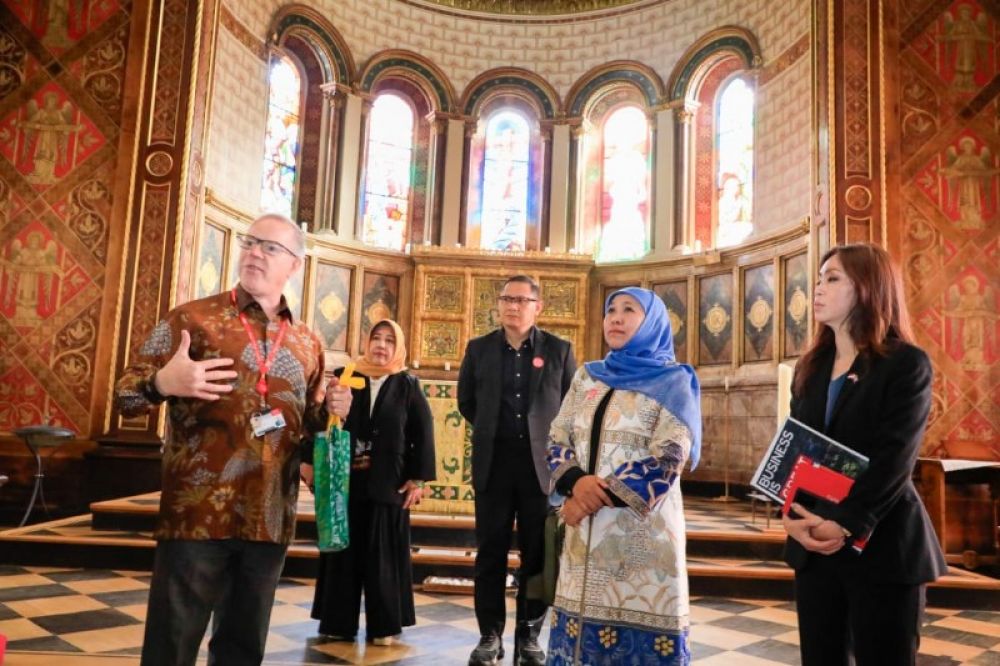 Turut mendampingi Gubernur Khofifah, Honorary Consulate, British Embassy Surabaya Ivy Kamadjaja, Wakil Rektor Bidang Akademik, Kemahasiswaan, dan Alumni Unair Prof. Dr. Bambang Sektiari Lukiswanto, DEA, drh., Direktur Pascasarjana Unisma Prof. H. M. Mas'ud Sa'id, MM, Sekjen PP IKA Unair, dan beberapa Kepala OPD Jatim. (zainul)