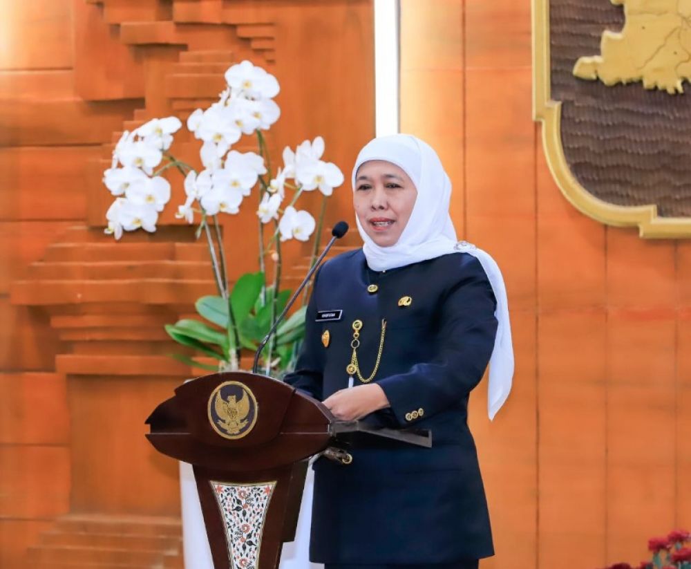 Gubernur Khofifah menyampaikan arahan. (Ist)