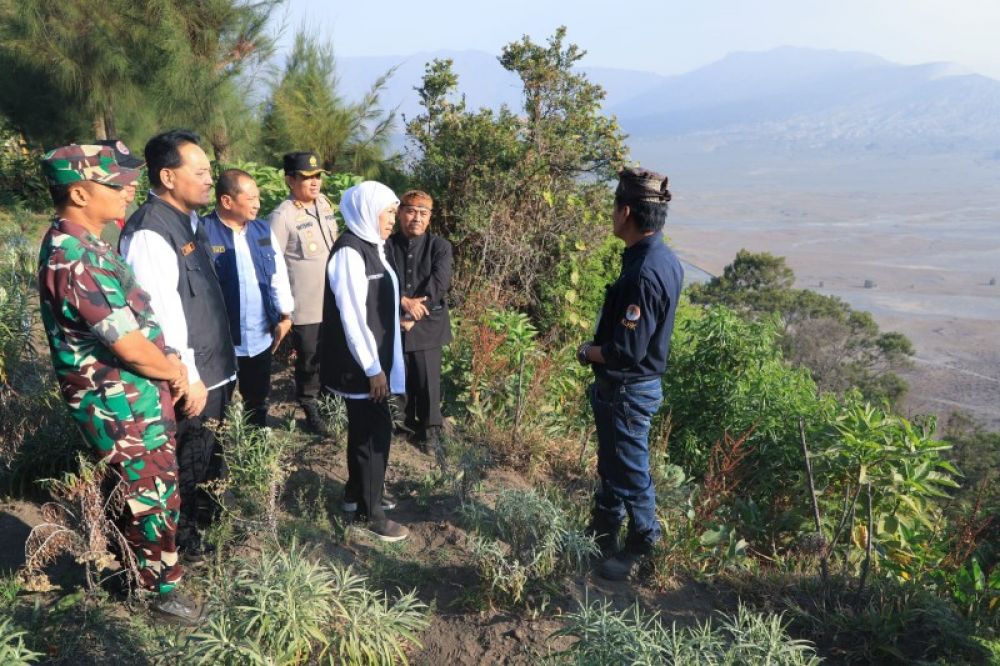 KAB. PROBOLINGGO | B-bews.id - Gubernur Jawa Timur Khofifah Indar Parawansa meninjau langsung kondisi kebakaran hutan dan lahan (karhutla) yang terjadi di Lembah Watangan atau Bukit Teletubbies, di Kec. Sukapura, Kab. Probolinggo, yang merupakan bagian dari kawasan wisata Bromo, Sabtu (9/9).