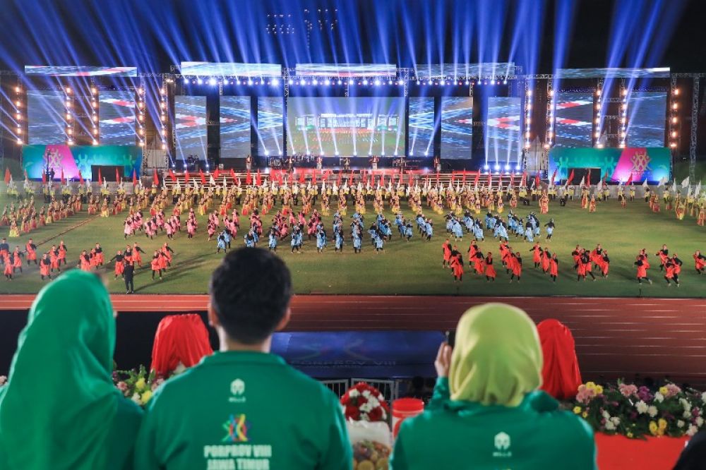 Dilakukan tepat di Hari Olah Raga Nasional (Haornas) ke XL (40), pembukaan Porprov VIII Jatim terasa begitu meriah dengan diramaikan oleh 25 ribu masyarakat dari berbagai daerah. Tak hanya kontingen, masyarakat umum yang datang pun dibuat takjub oleh serangkaian penampilan yang disajikan.