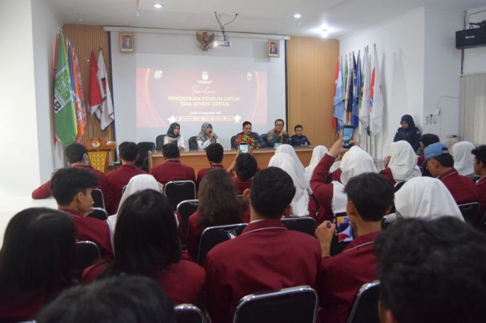 Para siswa, SMAN Semen Gresik saat di berikan penjelasan terkait kepemiluan. (Ist)