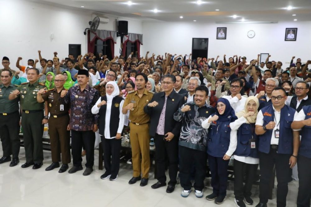 Pada kesempatan tersebut, Gubernur Khofifah pun menyapa langsung seluruh masyarakat yang hadir di Bakorwil Madiun, serta mengajak bersholawat. Tak lupa, ia pun mengapresiasi masyarakat yang tertib mengikuti prosesi penyerahan bantuan dan gelaran Pasar Murah.