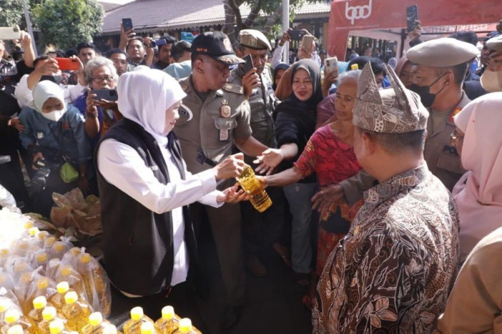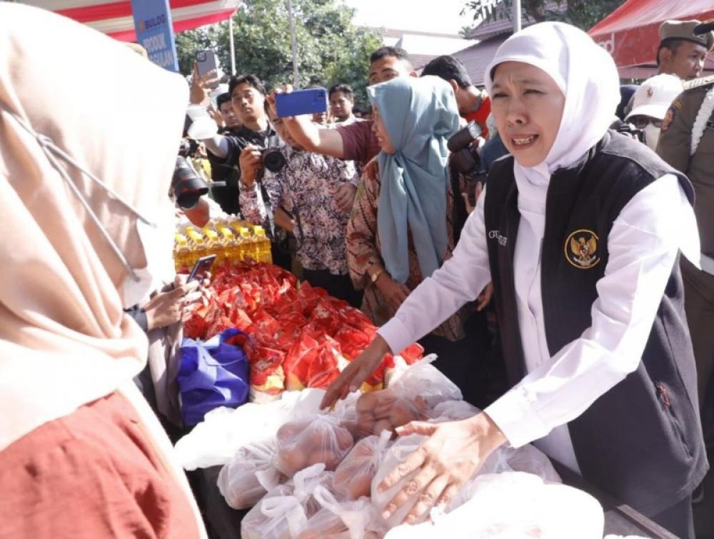 Sambil meninjau produk sembako yang didisplay Khofifah memanggil pembeli yang membawa anak untuk dibagikan telur sambil berpesan agar gizi anaknya diprioritaskan jangan sampai stunting. Hal seperti ini ia lakukan di setiap kunjungan pasar murah.