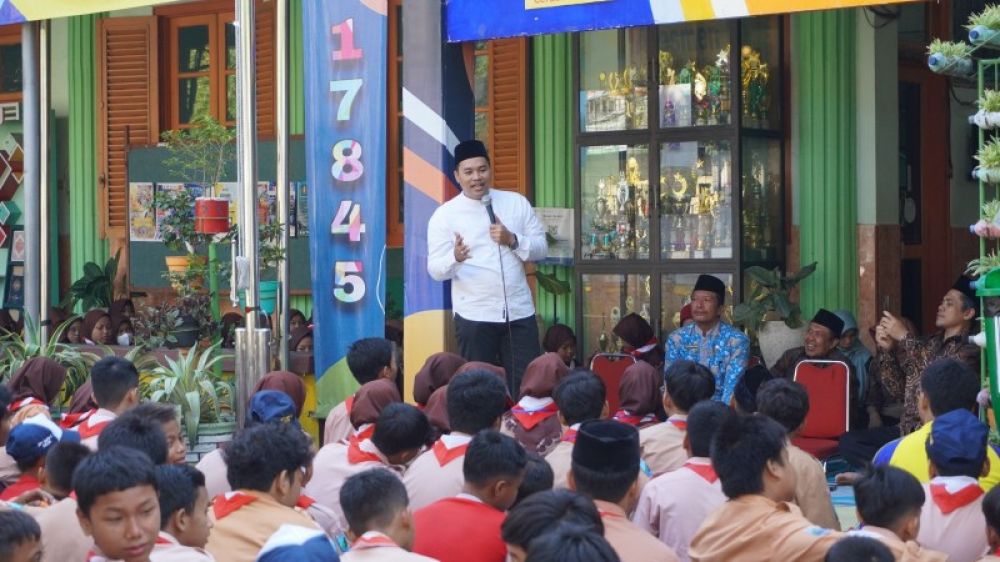 "Adik-adik sekalian, pagi ini kita akan belajar bersama tentang pemilu dan demokrasi, bagaimana demokrasi itu bisa kita terapkan mulai dari lingkungan terkecil kita, terutama sekolah dan keluarga," terang Makmun.