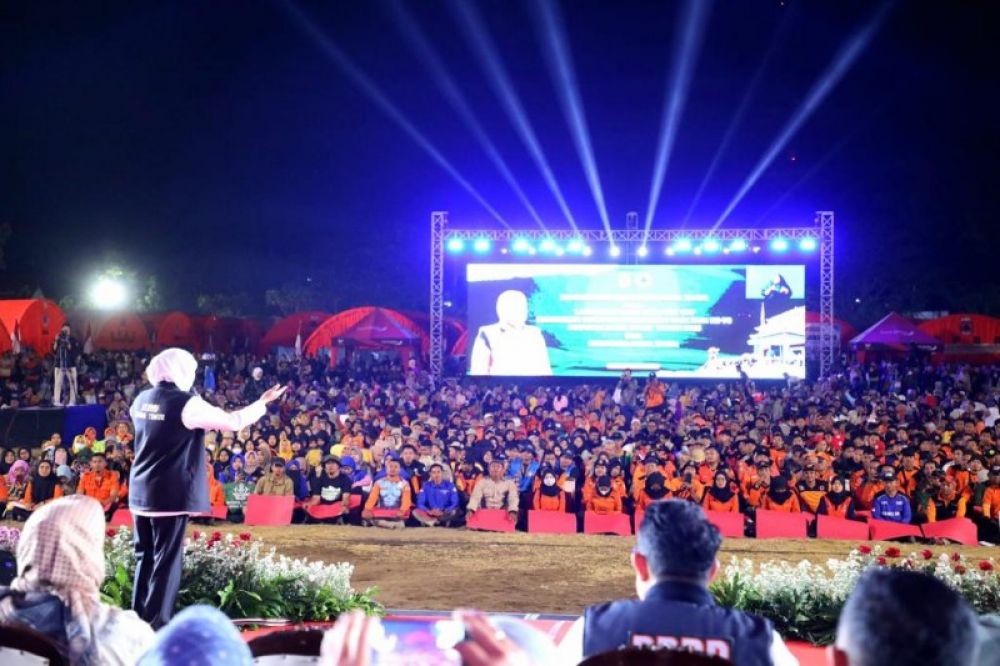 MAGETAN | B-news.id - Gubernur Jawa Timur Khofifah Indar Parawansa melaunching Logo dan Kick off rangkaian kegiatan peringatan Hari Jadi ke-78 Prov. Jawa Timur sekaligus Jambore relawan penanggulangan bencana di Lapangan Desa Nguntoronadi, Kabupaten Magetan, Sabtu (23/9) malam.