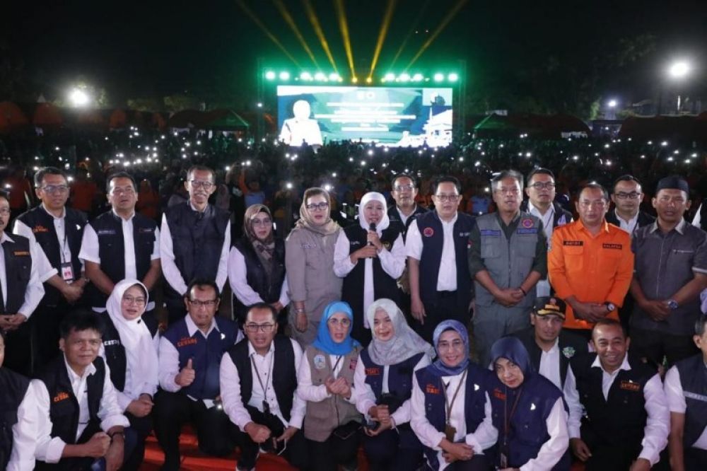 Launching tersebut ditandai dengan lantunan shalawat oleh Gubernur Khofifah di tengah ribuan relawan penanggulangan bencana provinsi Jawa Timur serta masyarakat Magetan dengan dihiasi flash gawai di malam hari.