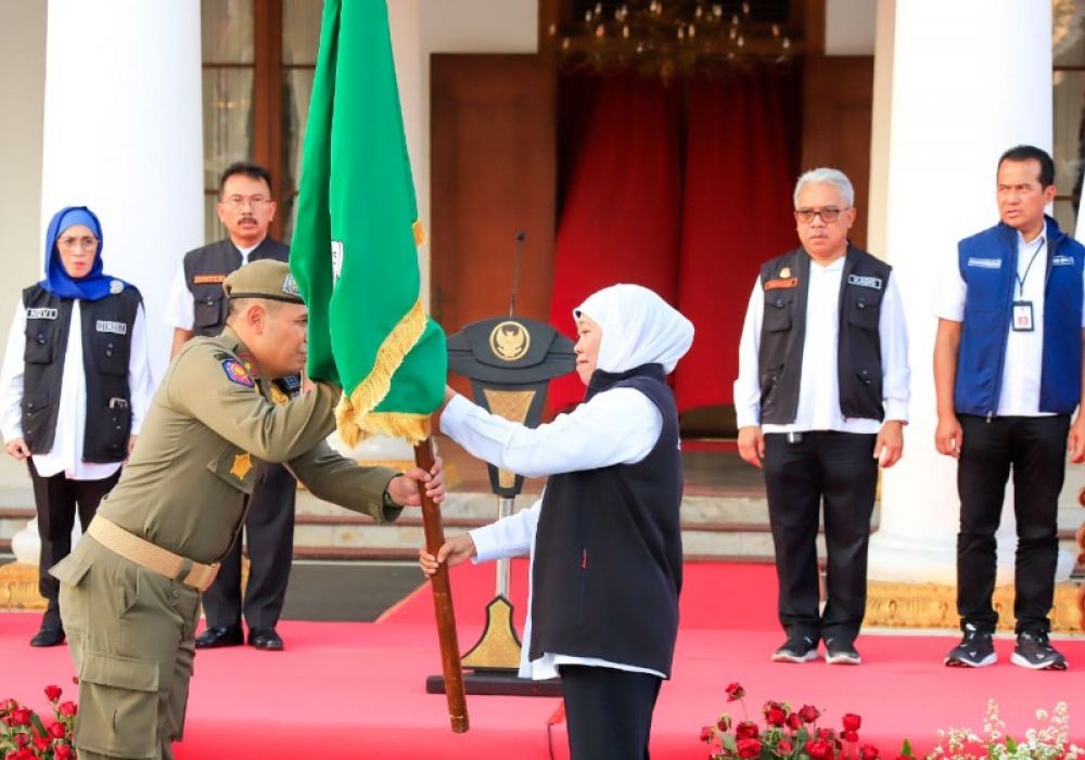 SURABAYA | B-news.id - Gubernur Jawa Timur Khofifah Indar Parawansa memberangkatkan Kirab Pataka Jer Basuki Mawa Beya sebagai rangkaian dimulainya HUT Pemprov Jatim ke - 78 di Gedung Negara Grahadi, Minggu (24/9).