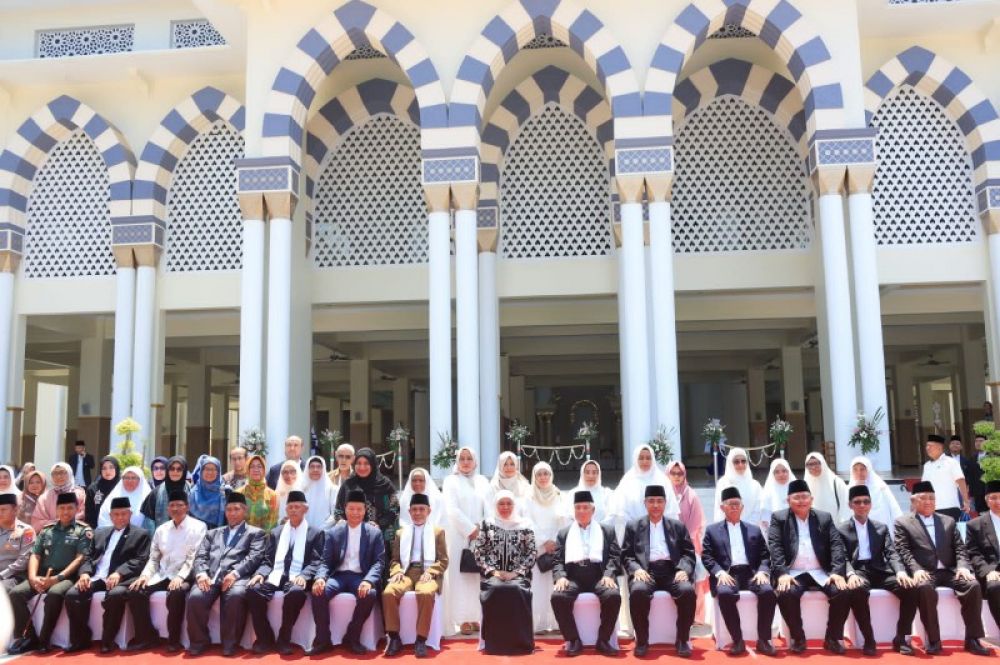 Gubernur Khofifah melakukan sholat dhuhur dilanjutkan sujud syukur dalam rangka peringatan 1 abad Pondok Modern Gontor Darussalam.