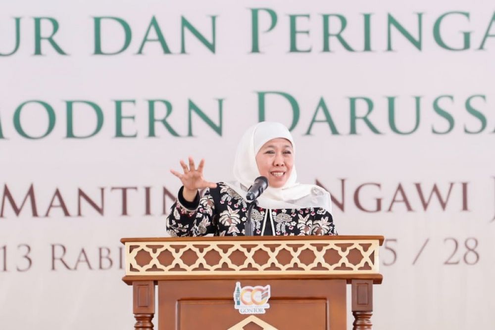 Dalam sambutannya Gubernur Khofifah menyampaikan bahwa perjalanan pondok Gontor selama satu abad ini telah memberikan kontribusi besar bagi kehidupan masyarakat bangsa negara dan dunia.