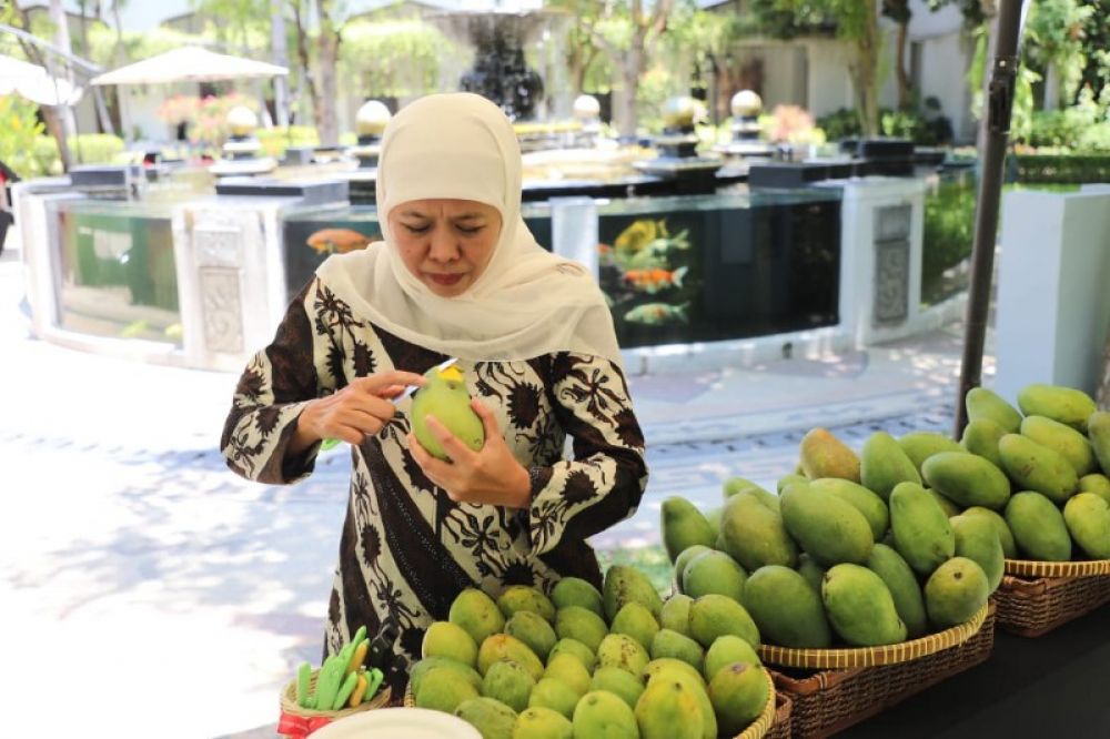 SURABAYA | B-news.id - Memasuki musim buah mangga, Gubernur Jawa Timur Khofifah Indar Parawansa tak mau ketinggalan untuk menikmati manis dan segarnya buah dari wilayah tropis tersebut.
