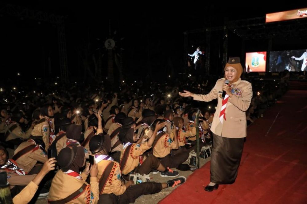 Dalam sambutannya, Gubernur Khofifah mengatakan, para peserta Pramuka Penggalang yang berusia 13-15 tahun merupakan generasi yang akan menjadi geberasi emas saat Indonesia enas 2045.