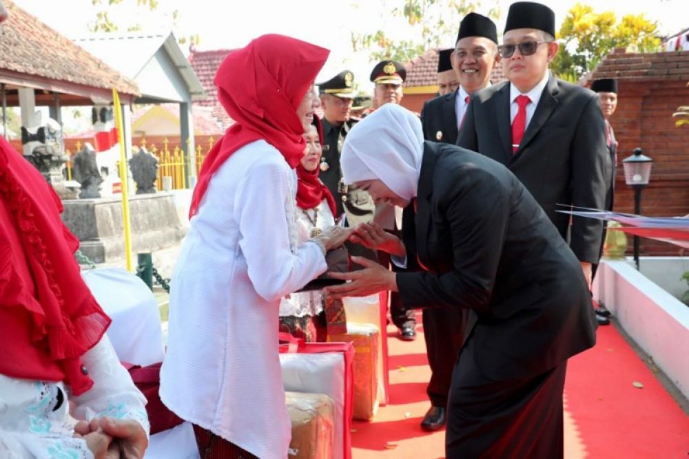 Pada kesempatan tersebut, Gubernur Khofifah memberikan bingkisan dan tali asih kepada 5 keluarga atau ahli waris RMT Ario Soerjo.