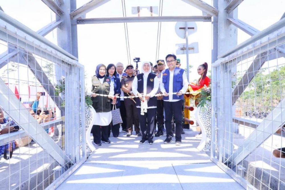 LUMAJANG | B-news.id - Gubernur Jawa Timur Khofifah Indar Parawansa meresmikan Jembatan Gantung Kaliregoyo di Desa Sumberwuluh, Kecamatan Candipuro, Tanggul Sungai Glidik dan Mujur Kab. Lumajang, Selasa (17/10).