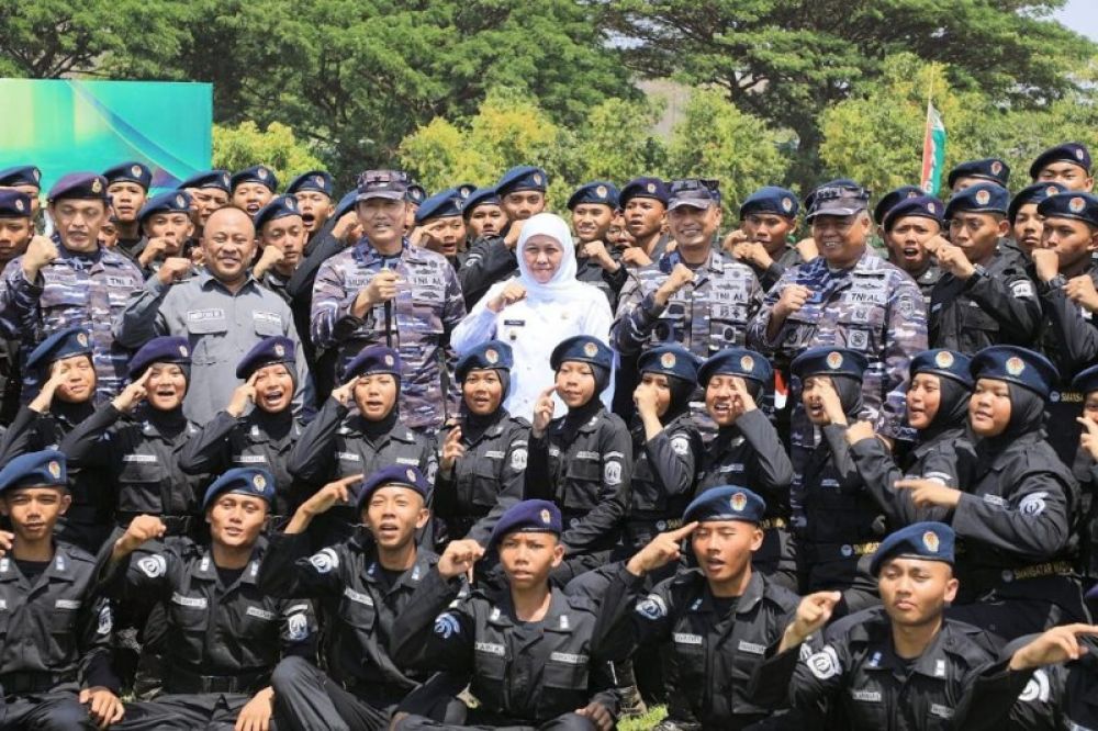 Pada kesempatan tersebut, para taruna-taruni peserta upacara juga mengucapkan yel-yel yang disaksikan langsung oleh Gubernur Khofifah.