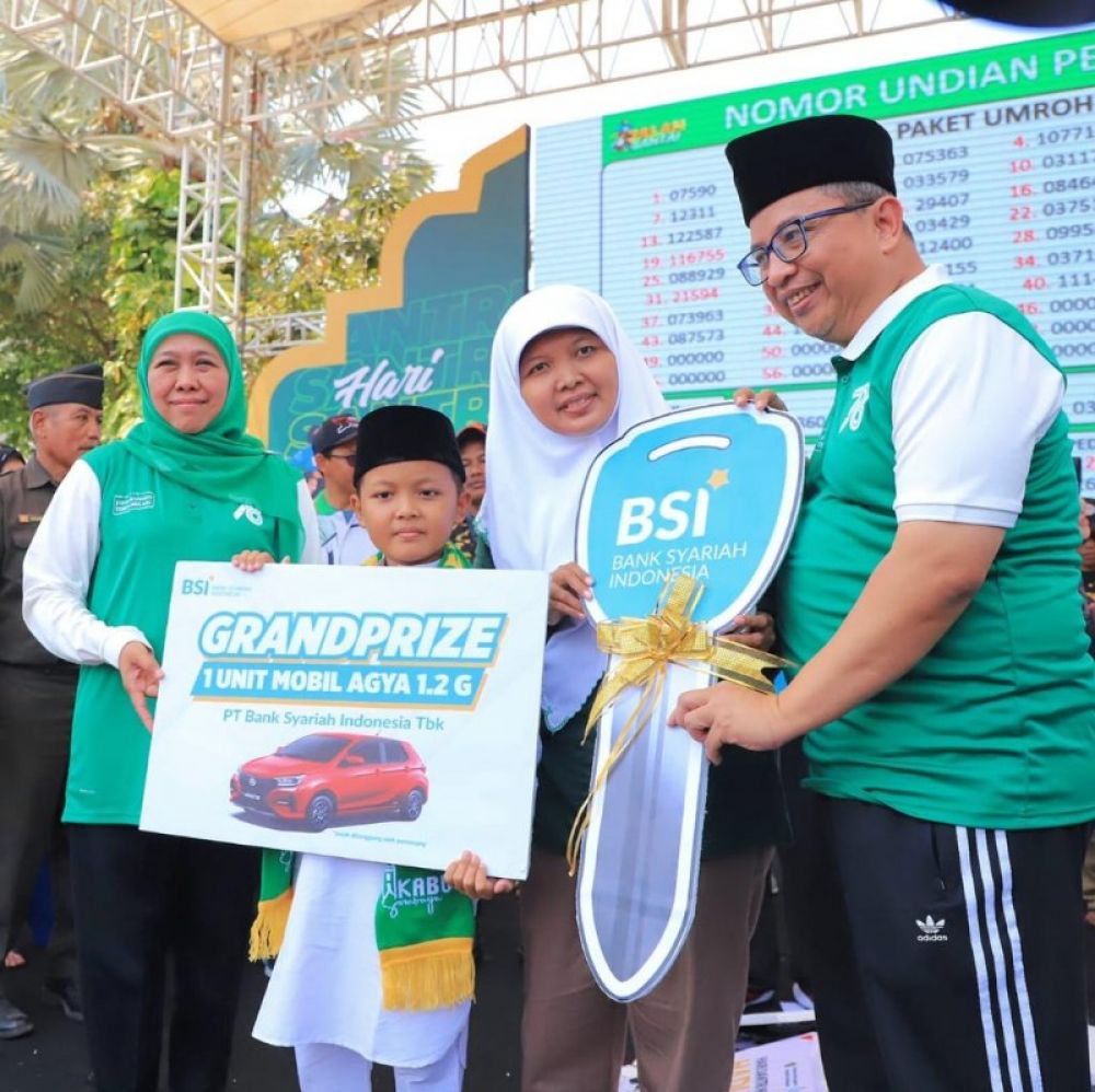 Gubernur Khofifah pun berkesempatan secara langsung melakukan pengundian kupon Jalan Santai Hari Santri ini. Masyarakat pun tampak menunggu dengan antusias. Ini karena sederet hadiah menarik telah dipersiapkan oleh panitia. Mulai dari 5 unit sepeda motor, 5 laptop, 5 unit lemari es, 5 unit TV, 5 unit sepeda gunung dan sejumlah hadiah lain. Tidak hanya itu, juga tersedia grandprize 1 unit mobil dan 65 paket umroh.