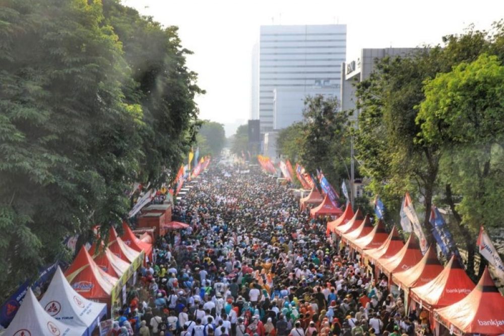 Usai Jalan Santai rampung ditempuh, masyarakat pun kembali berkumpul di depan panggung utama depan Gedung Negara Grahadi untuk pengundian kupon.