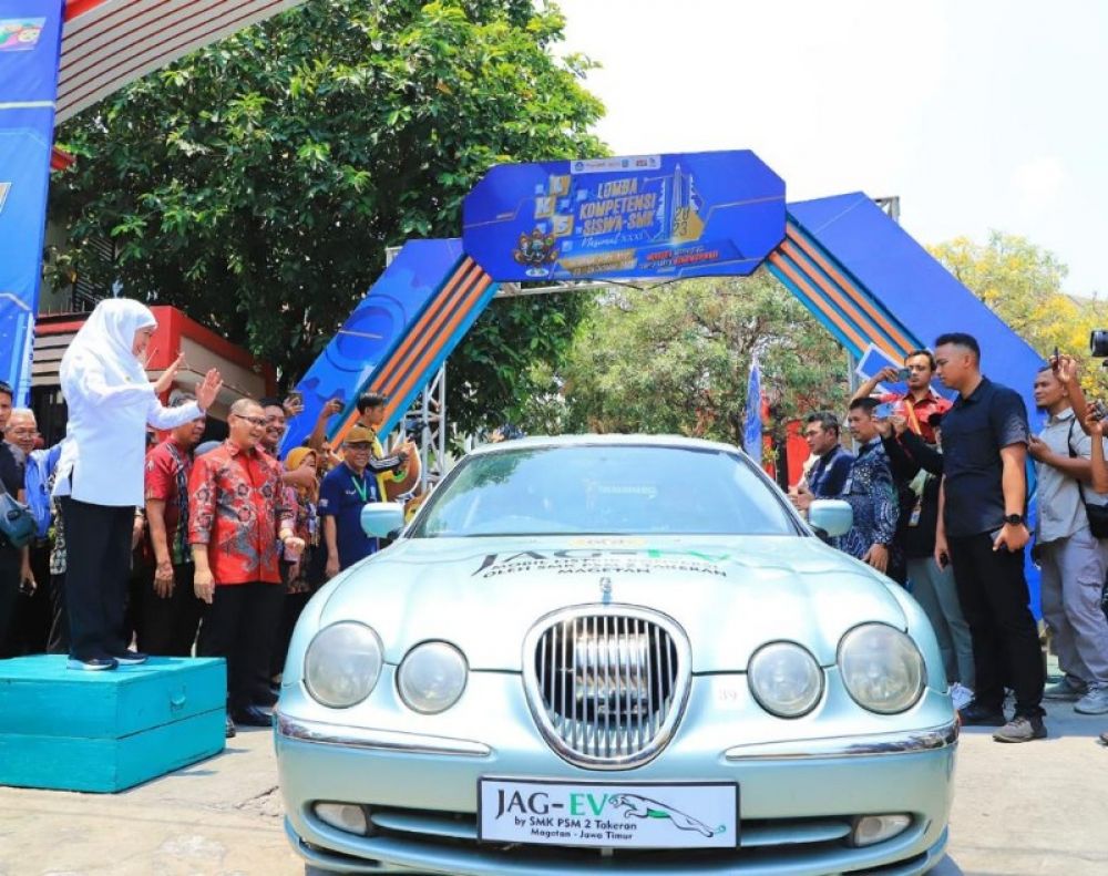 "Menurut saya ini menjadi pendorong semangat bagaimana menuju Net Zero Emission 2060. Bagaimana kita mengkonversi energi dari fosil ke non fosil. Dan itu dimulai dari anak-anak SMK, saya rasa ini keren sekali," kata Khofifah yang juga sempat menjajal langsung salah satu kendaraan listrik karya siswa SMK tersebut.