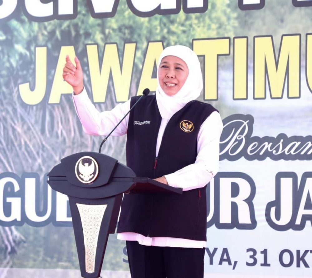 Khofifah menjelaskan bahwa luasan mangrove di Jawa Timur mencapai 27.221 hektare, mencakup 48-50 persen kawasan mangrove di Pulau Jawa. Pemerintah Provinsi Jawa Timur telah mendukung penanaman mangrove di pesisir sejak 2020 melalui dana APBD, APBN, dan dukungan pihak lain, dengan total bibit mangrove mencapai 6.813.947 batang.