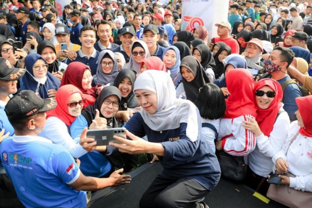 Berebut selfi dengan Gubernur Khofifah. (Ist)