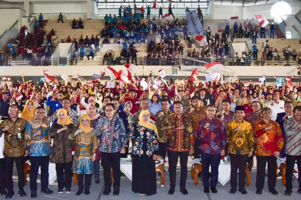 MALANG | B-news.id - Gubernur Jawa Timur Khofifah Indar Parawansa menyapa langsung ribuan pilar kesejahteraan sosial sewilayah Bakorwil III Malang di Gelanggang Olah Raga (GOR) Ken Arok Malang, Sabtu (11/11).