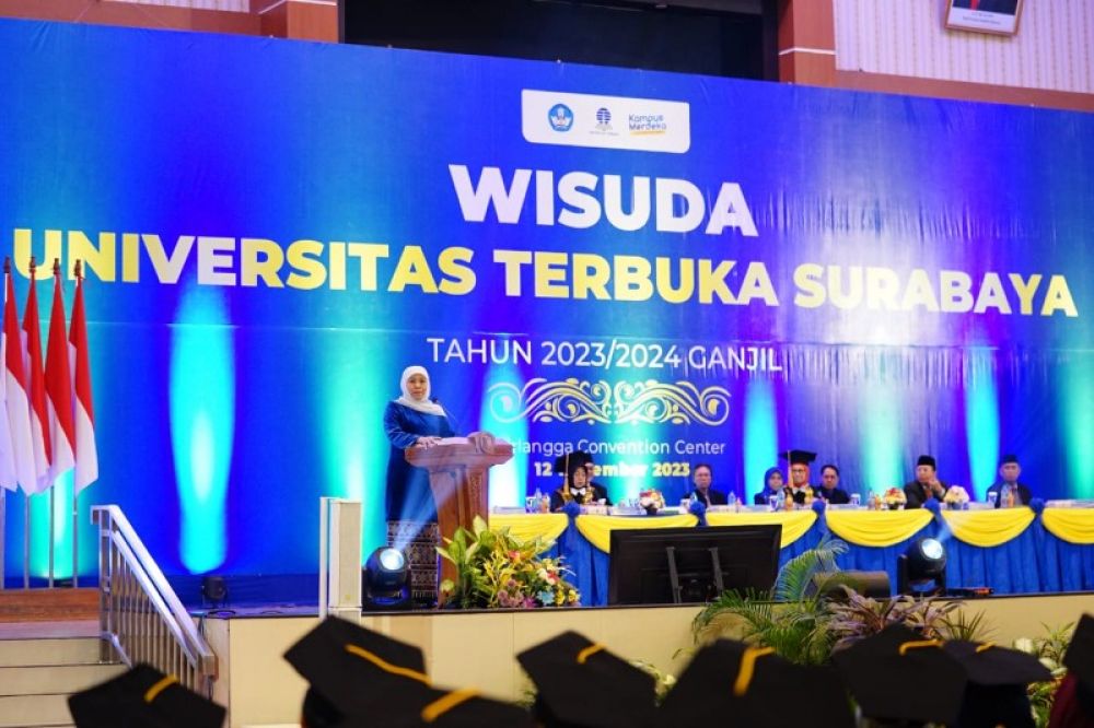 SURABAYA | B-news.id Gubernur Jawa Timur Khofifah Indar Parawansa menghadiri secara langsung Wisuda Universitas Terbuka Surabaya di Airlangga Convention Center (ACC), Minggu (12/11).
