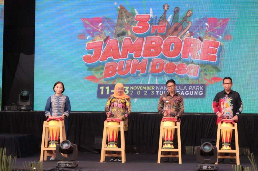 TULUNGAGUNG | B-news.id - Gubernur Jawa Timur Khofifah Indar Parawansa membuka 3rd Jambore Badan Usaha Milik (BUM) Desa Provinsi Jawa Timur Tahun 2023 di Nangkula Park Kab. Tulungagung, Minggu (12/11).