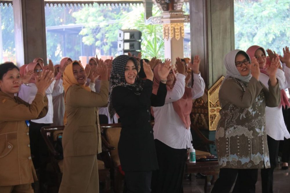 Bupati Ikfina bernyanyi bersama para tenaga pendidik PAUD, contoh belajar menyenangkan. (ist)