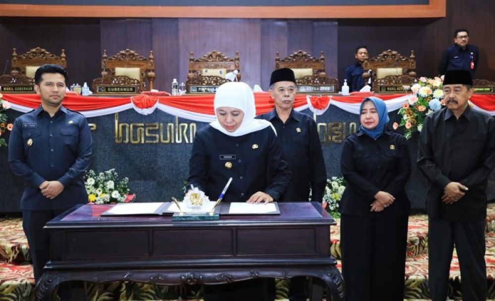 Persetujuan Raperda ini ditandai dengan penandatanganan Berita Acara Persetujuan Bersama oleh Gubernur Khofifah, Ketua DPRD Jatim Kusnadi, Wakil Ketua DPRD Jatim Anik Maslachah, Wakil Ketua DPRD Jatim Achmad Iskandar di Gedung DPRD Jawa Timur pada Kamis (30/11).