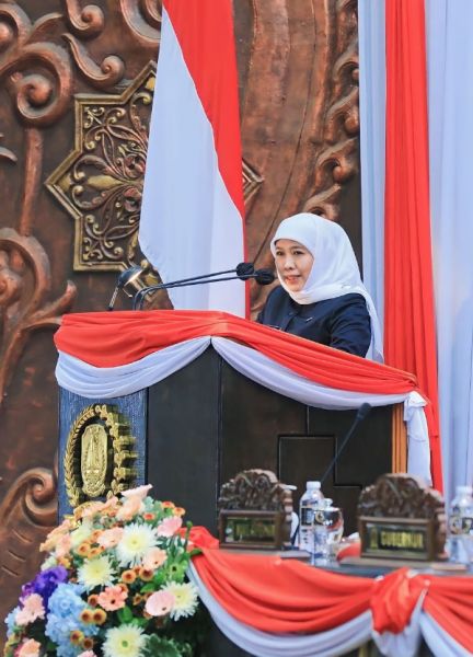Gubernur Khofifah menyampaikan psparanbya saat hadiri rapat paripurna DPRD Jatim terkait Raperda Penanaman Modal. (Ist)
