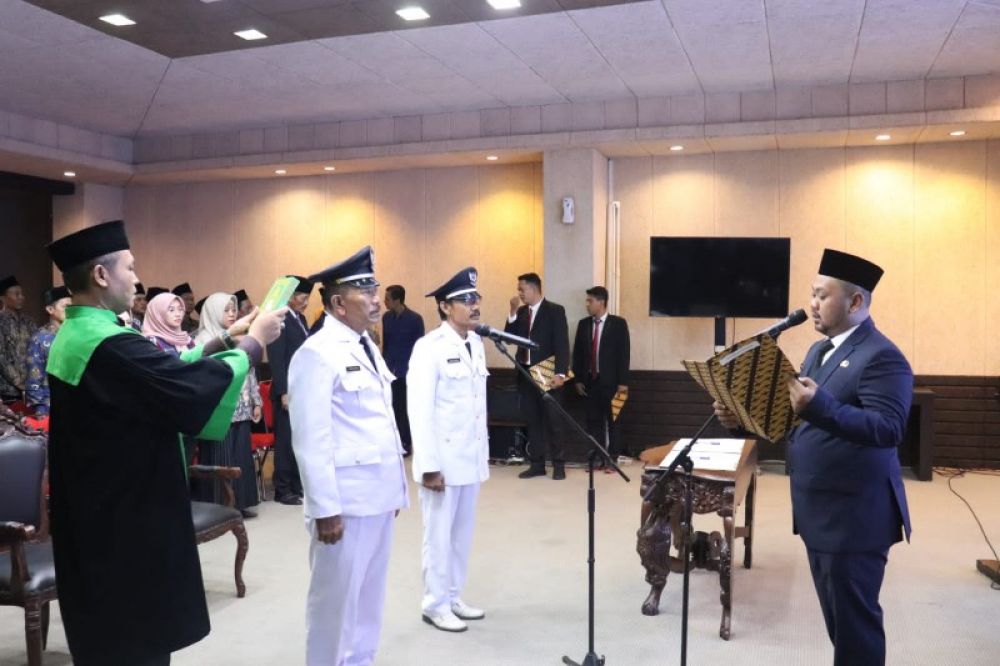 Proses pelantikan Dua kades PAW. Bupati membacakan sumpah dan janji. (Ist)