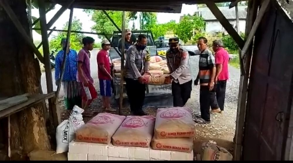 BLITAR | B-news.id - Dalam mengimplementasikan Polri yang SANTUN (Sinergitas, Amanah, Netral, Transparan, Unggul, Nurani), Polsek Wonotirto memberikan bantuan berupa semen sebanyak 22 zak kepada pantai Masjid Baitus Syafa'ah, di Dusun Sidorejo RT 05 RW 03 atau Kampung Segawen Desa Tambakrejo Kecamatan Wonotirto Kabupaten Blitar.