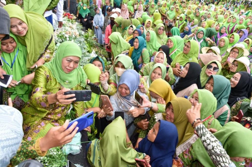 LAMPUNG SELATAN | B-news.id - Ketua Umum PP Muslimat NU Khofifah Indar Parawansa menghadiri Pengajian Akbar yang diselenggarakan oleh PW Muslimat NU Lampung di Lapangan Cipta Karya Kalianda, Kabupaten Lampung Selatan, Jumat (12/1).