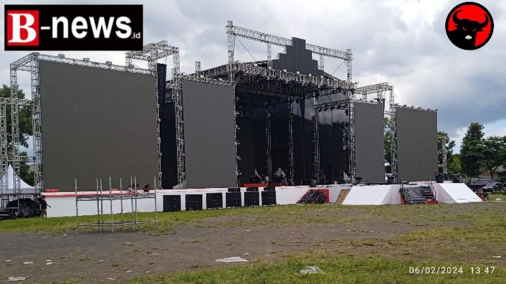 Panggung raksasa telah berdiri megah di tengah-tengah lapangan RTH Maron Kecamatan Genteng, Kabupaten Banyuwangi, Jawa Timur, Rabu (07/02/2024).( ist)