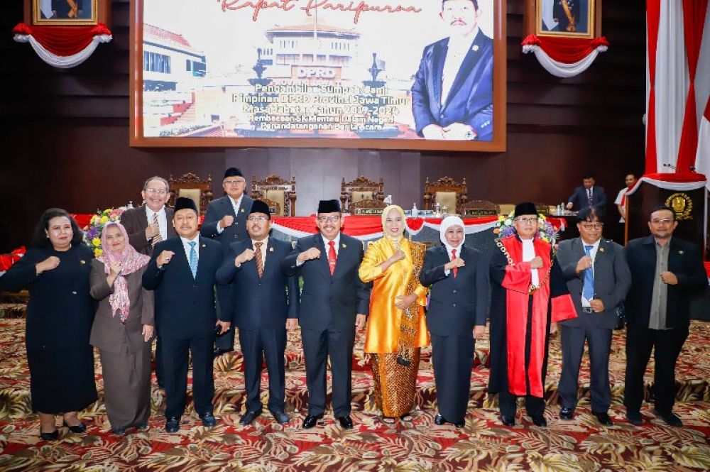 "Kami atas nama Pemprov Jatim menyampaikan selamat atas pengambilan sumpah/janji Pimpinan DPRD Jatim Mayjen TNI (Purn) Hari Istu Subagio. Semoga bisa memberikan dampak yang luas bagi masyarakat Jawa Timur," kata Gubernur Khofifah.
