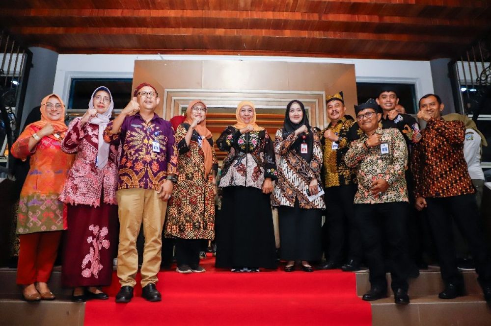 Gubernur Khofifah didampingi Kadisparbud Jatim, Evi saat foto bersama. (Ist)