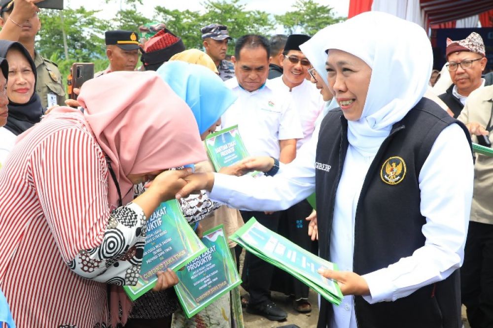 Dalam kesempatan ini, Gubernur Khofifah menyerahkan zakat produktif untuk 50 penerima manfaat. Ia juga berpamitan, karena pada tanggal 13 Februari 2024 nanti masa jabatannya berakhir.